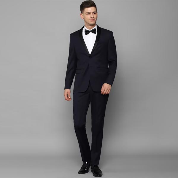 Navy blue solid slim-fit party suit